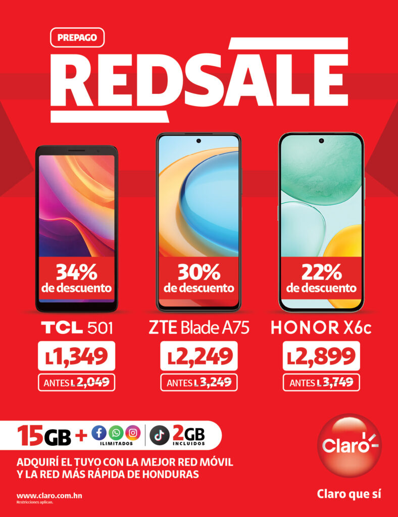 Las promociones del Red Sale estarán disponibles por tiempo limitado. Para más información, visita www.claro.com.hn o acércate a la tienda Claro más cercana.